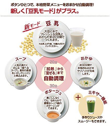 ハーフ機能を搭載し、2人前調理が可能に。スープ、ポタージュ、おかゆが約25分間で調理できる。