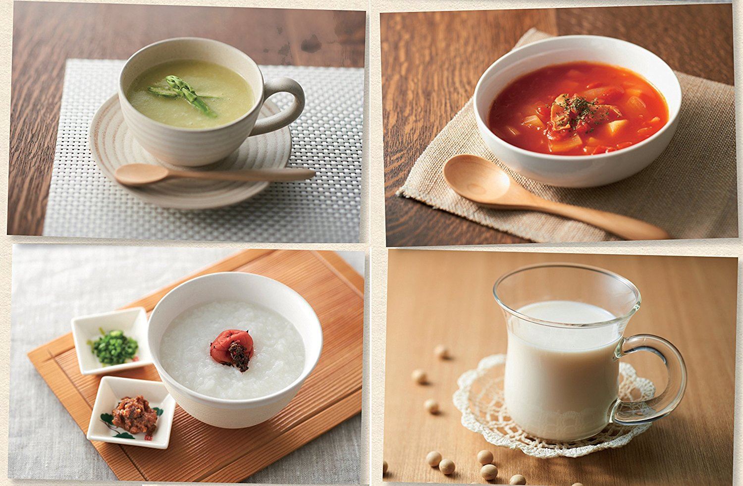 スープ以外にも、豆乳、おかゆ、リゾット、ジュース、スムージーが作れるので、季節を通してバリエーション豊富なメニューが楽しめる。